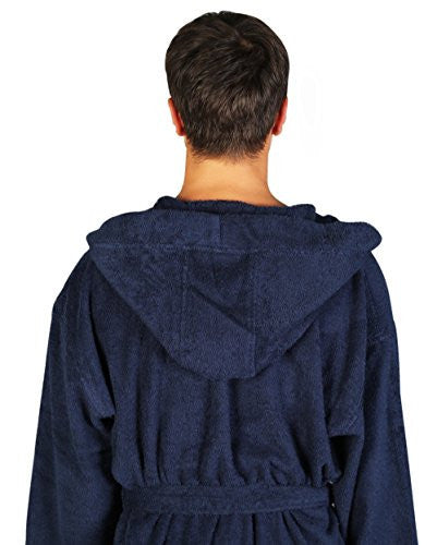 ARUS MEN'S CLASSIC HOODED BATHROBE TURKISH COTTON TERRY CLOTH ROBE (L/XL,N.BLUE)