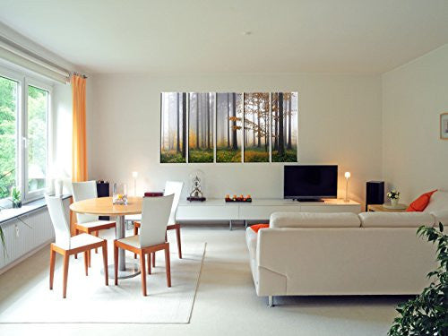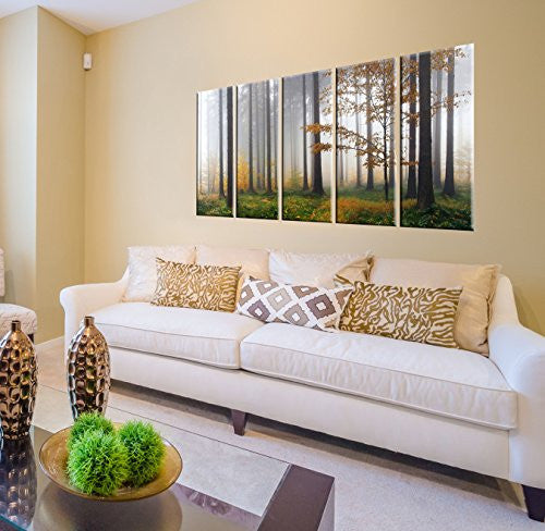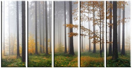 AUTUMN FOREST PRINT ON CANVAS, FOREST WALL ART, FRAMED AND READY TO HANG, FOREST PAINTING, TREE PAINTINGS ON CANVAS, 5 PANEL CANVAS PRINT