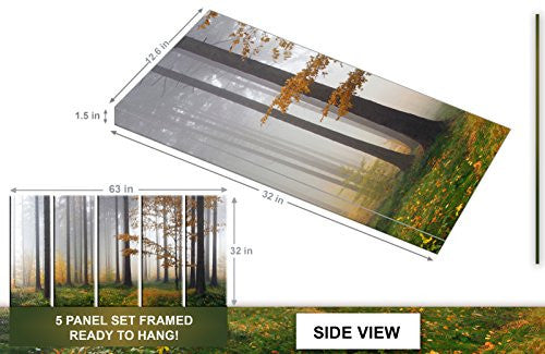 Details: Canvas Print Design of Autumn Forest - Framed and Ready to Hang. Introduction: Our framed canvas print art work is first printed at high resolution on quality thick 100% cotton canvas. The canvas is then stretched professionally over sturdy wooden stretcher frames. The image wraps around the sides resulting in a top quality interior decor art work. This design will be a lasting and well valued gift for home or office décor. Benefits: • This design comes already framed and ready to hang. • Each panel has a wide hook already attached for easy hanging. • Our best price guarantee and 30 day money back guarantee gives you assurance of a quality product at an affordable price. • Well packed and dispatched within 1 day via courier. Proof: • A certificate of authenticity is sent with each purchase certifying the quality of materials used. • Check our store's reviews which currently show top performance in terms of product quality and on time delivery. • Check out the positive video and text reviews from several of Amazon's top 500 reviewers. Buy with confidence. Bonus: • A free bonus on request is a design tips e-book. • Free postage. Buy this exceptional interior décor artwork for great visual impact and talking point. Click on the above yellow "Add to Cart" icon for easy check out.