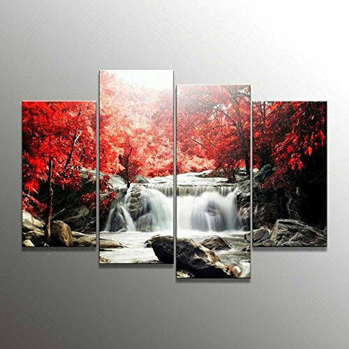 CANVAS WALL ART 4-PIECE RED WOODS WATERFALL CANVAS PRINT PAINTINGS FOR WALL AND HOME DÉCOR